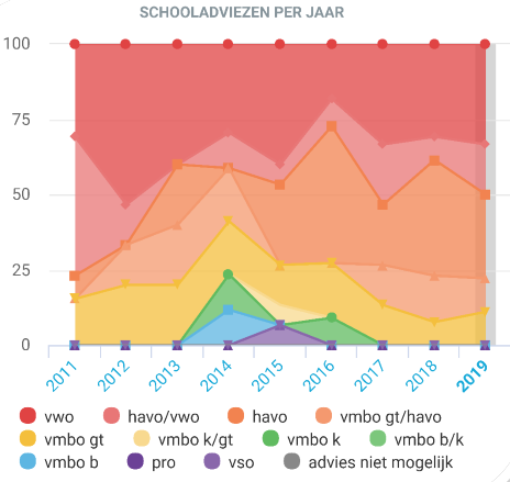 De afgelopen jaren hebben onze groep 8 leerlingen de volgende adviezen gekregen: